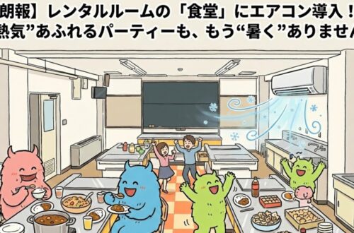 【朗報】レンタルルームの「食堂」にエアコン導入!“熱気”あふれるパーティーも、もう“暑く”ありません